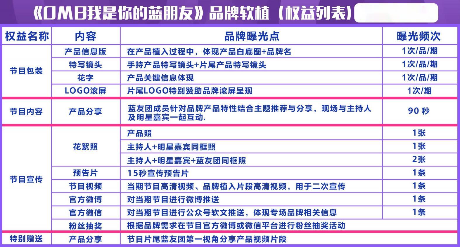 《OMB我是你的蓝朋友》品牌软植(权益列表)
