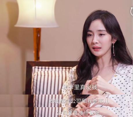 杨幂表示:钱都在公司或者她爸爸户头,卡里也就五万、十万这么多'',用完再问她爸爸要。大幂幂真的是语出惊人。