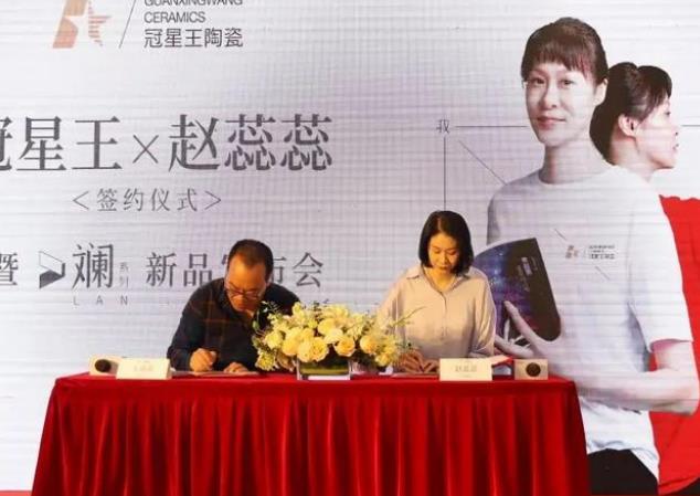 4月18日,冠星王陶瓷签约女排世界冠军、知名作家赵蕊蕊为品牌代言人。