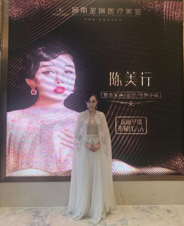 当天,陈美行身穿一袭裸色勾花深V长裙,搭配精致妆发,尽显姣好身材和优雅气质,雪纺披风更是衬托出陈美行的大气端庄。