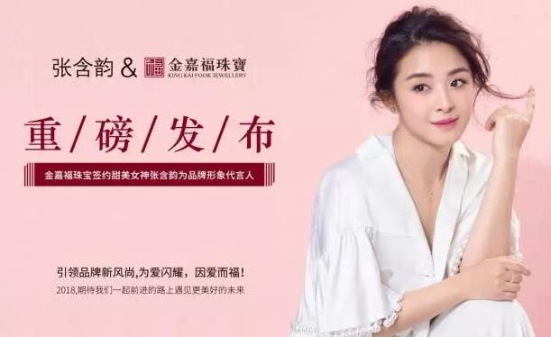 定位于珠宝新风尚引领品牌的金嘉福珠宝,为爱闪耀,因爱而福!甜美女神邂逅金嘉福珠宝,青春活力阳光向上却不失优雅,就像白色花瓣上的露珠,温润美好令人心动。 金嘉福珠宝 新的一年,一个不断创造、不断超越的金嘉福,更值得期待! 张含韵&金嘉福 张含韵从《超级女声》的青涩酸甜,到《偶像来了》的鬼马俏皮。从《新萧十一郎》古灵精怪的小公子,再到《兰陵王妃》的自由奔放真性情女主角元清锁。张含韵从歌手到演员不同的领域,都让我们看到了她不断突破自己、超越自己。张含韵出道十四载。她曾表示:“珍惜一步一个脚印走过的演艺路。对未来的旅程抱有很多的期待”。 甜美女神张含韵,一路走来,不忘初心,砥砺前行,始终如白雪般洁白无瑕,如钻石般永恒纯净。张含韵的甜美青春和实力底蕴与金嘉福珠宝的品牌文化完美契合,这场奇妙际遇令人惊喜。 张含韵的加盟,会与金嘉福珠宝撞出哪些火花,我们拭目以待吧!