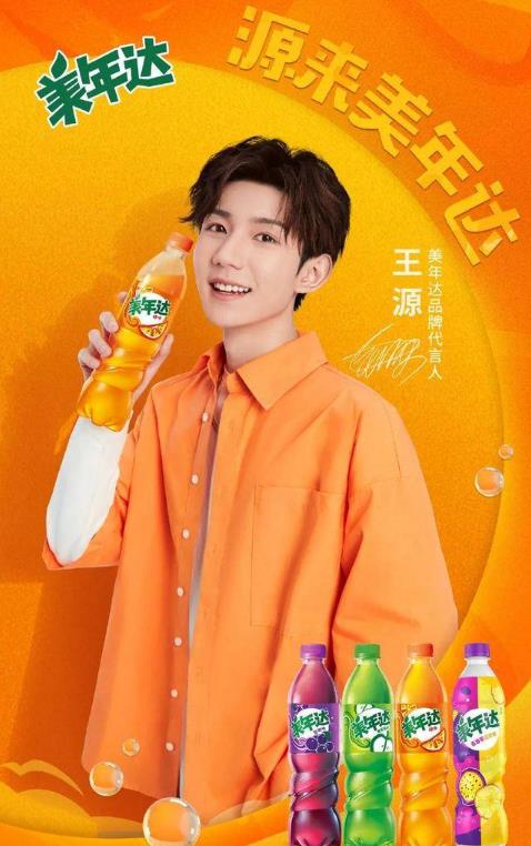 同时代言人王源发博“气泡激发灵感,果味爆出新意。很高兴成为美年达品牌代言人”,就此,王源和美年达开启一场全新合作之旅。