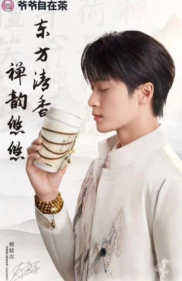 《爷爷自在茶》品牌首次与艺人合作便选择了檀健次作为代言人,既能为品牌提高知名度,又以其深入人心自在洒脱形象将代言饮品特有的国风意境传递给年轻消费者,不少粉丝喊话《爷爷自在茶》速速开遍全国,此番流量与口碑的双重加持,也能看出“肯爷爷”很重视这个牌子的推广和扩展。
