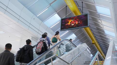位置醒目,位于客流聚集上方,100% 覆盖国内到达客流